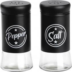 Zestaw zawiera dwa przyprawniki o pojemności 140 ml z przezroczystym szklanym dnem i matowo czarną metalową górną częścią. Praktyczne wieczka z otworami umożliwiają równomierne sypanie i pomagają zachować świeżość i aromat przypraw na dłużej. Dzięki wyraźnym napisom Salt i Pepper zawsze szybko rozpoznasz właściwy pojemnik.
