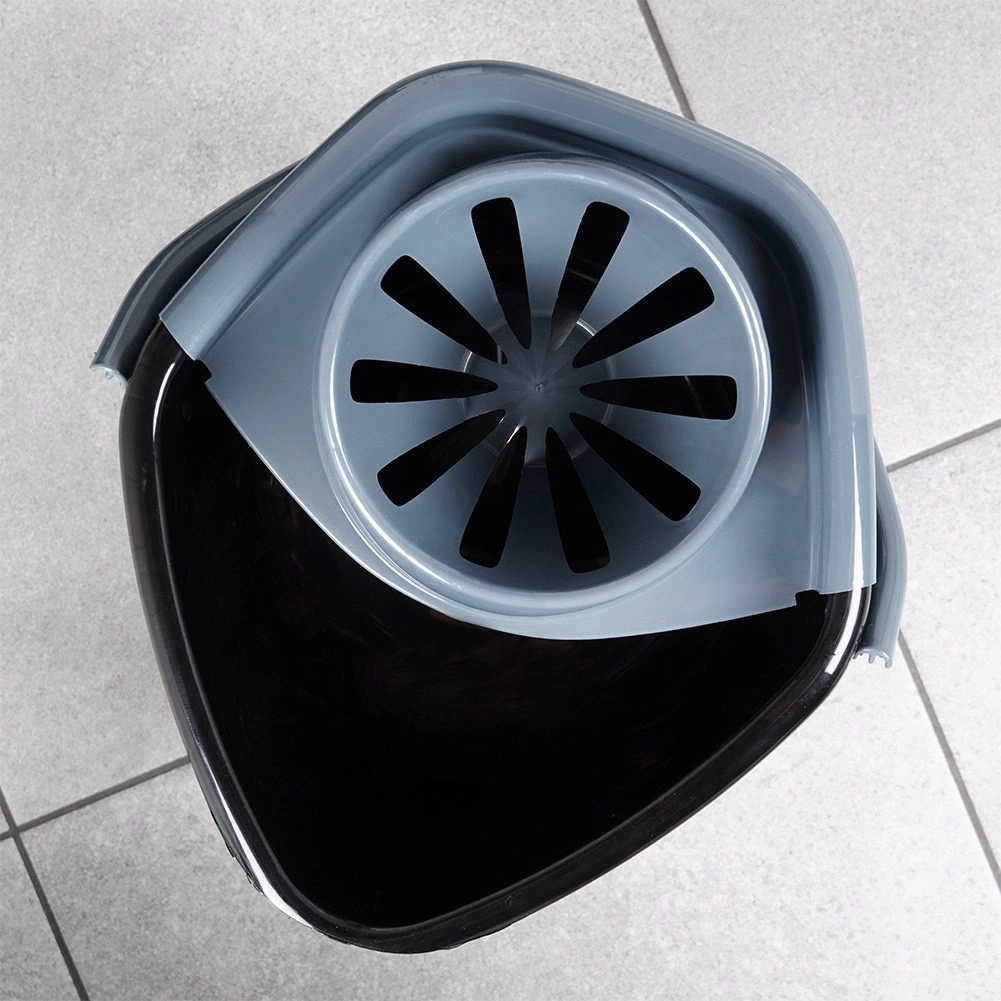 Praktyczny kosz z otworami skutecznie wyciska mopy paskowe i sznurkowe, przyspieszając sprzątanie bez zbędnego kapania.