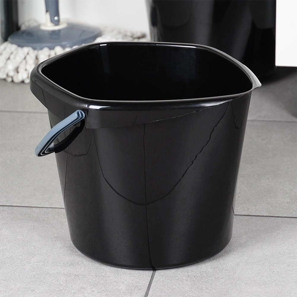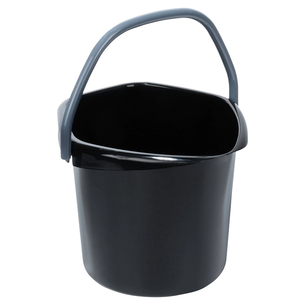Praktyczne czarne wiadro z solidnym szarym uchwytem wykonane jest z wysokiej jakości tworzywa, które jest mocne, trwałe i łatwe w czyszczeniu. Dzięki uniwersalnemu zastosowaniu nadaje się do sprzątania, mycia podłóg, przenoszenia wody oraz innych codziennych prac w domu i w ogrodzie.