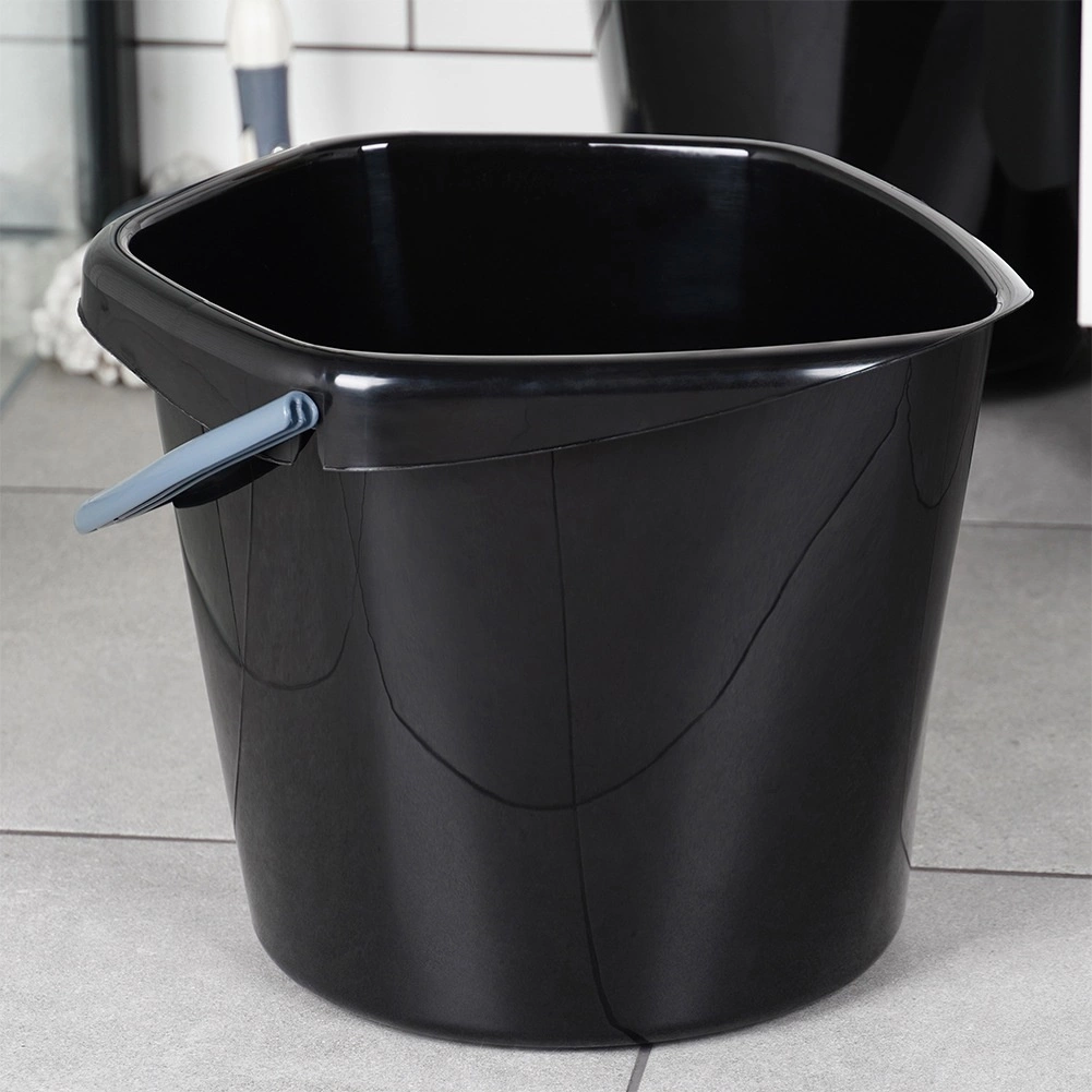 Praktyczne i uniwersalne wiadro o pojemności 14 l z wytrzymałego plastiku w czarnym kolorze, z mocnym, wygodnym uchem oraz profilowaną wylewką do precyzyjnego nalewania bez rozlewania. Idealne do sprzątania, ogrodu i warsztatu – lekkie, solidne i łatwe w utrzymaniu.