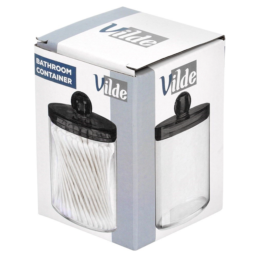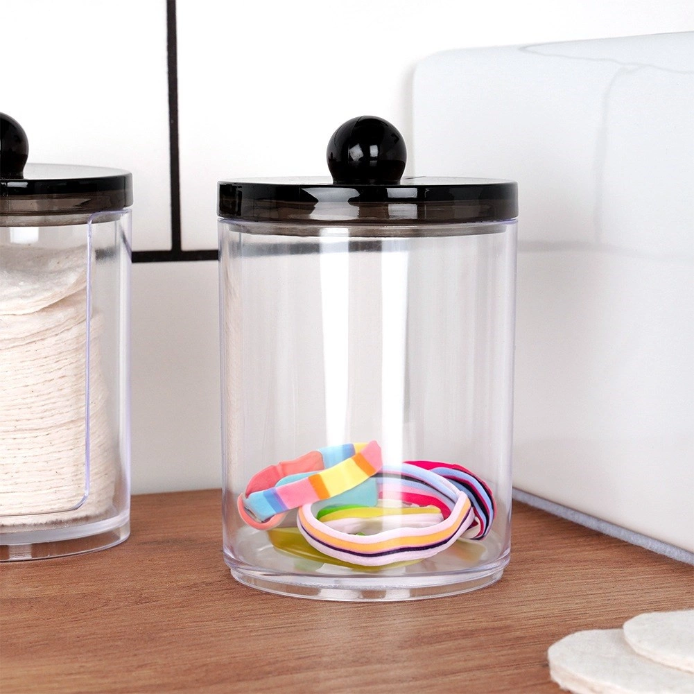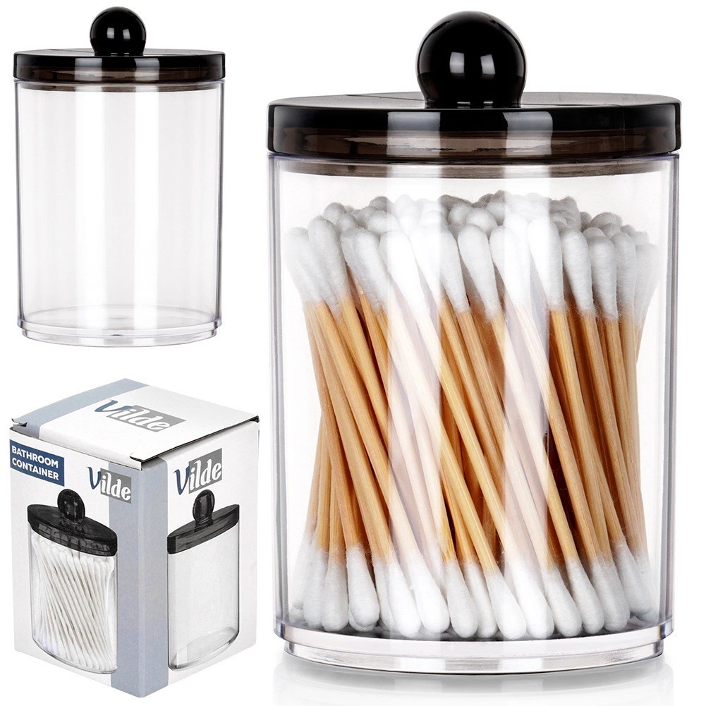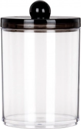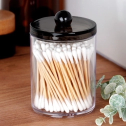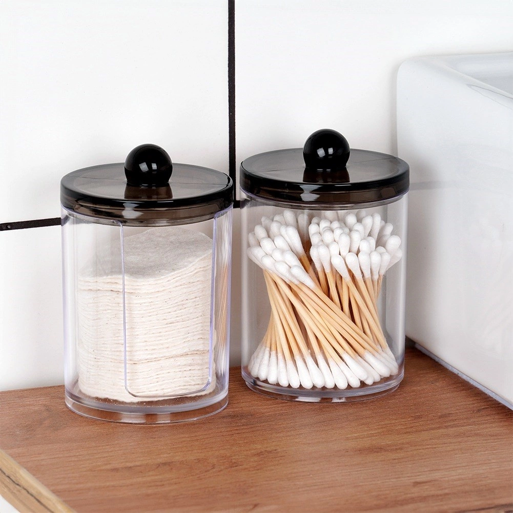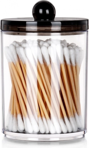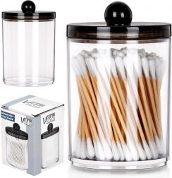 Utrzymuj kosmetyczne drobiazgi w porządku w jednym miejscu. Ten przezroczysty akrylowy pojemnik jest idealny na patyczki higieniczne lub płatki kosmetyczne. Minimalistyczny design z czarną pokrywką pasuje do każdej nowoczesnej łazienki i jednocześnie chroni zawartość przed kurzem.