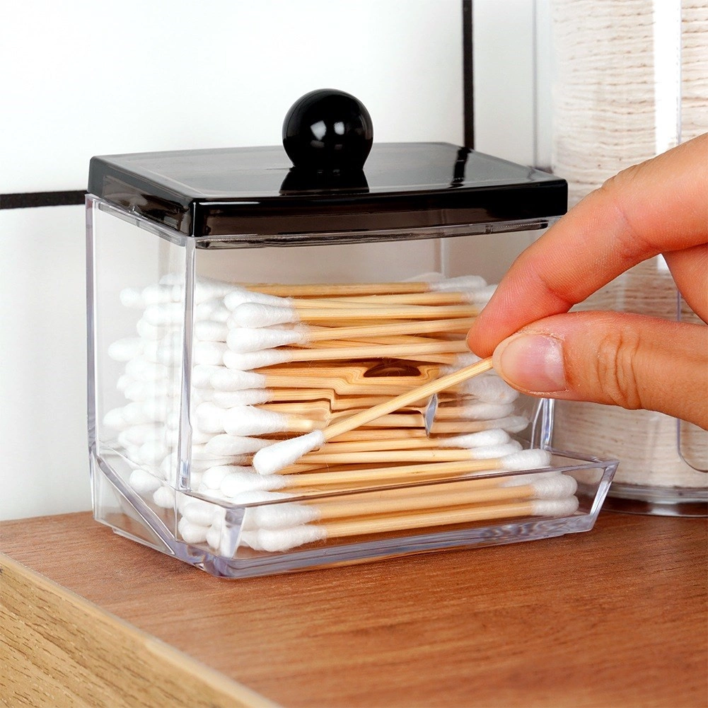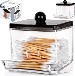Praktyczny organizer na patyczki bawełniane z przezroczystego akrylu z wygodną pokrywką i przednim otworem dla łatwego dozowania. Utrzymuje patyczki higienicznie czyste, chronione przed kurzem i zawsze pod ręką. Kompaktowe wymiary oraz nowoczesny design elegancko dopełnią każdą łazienkę.
