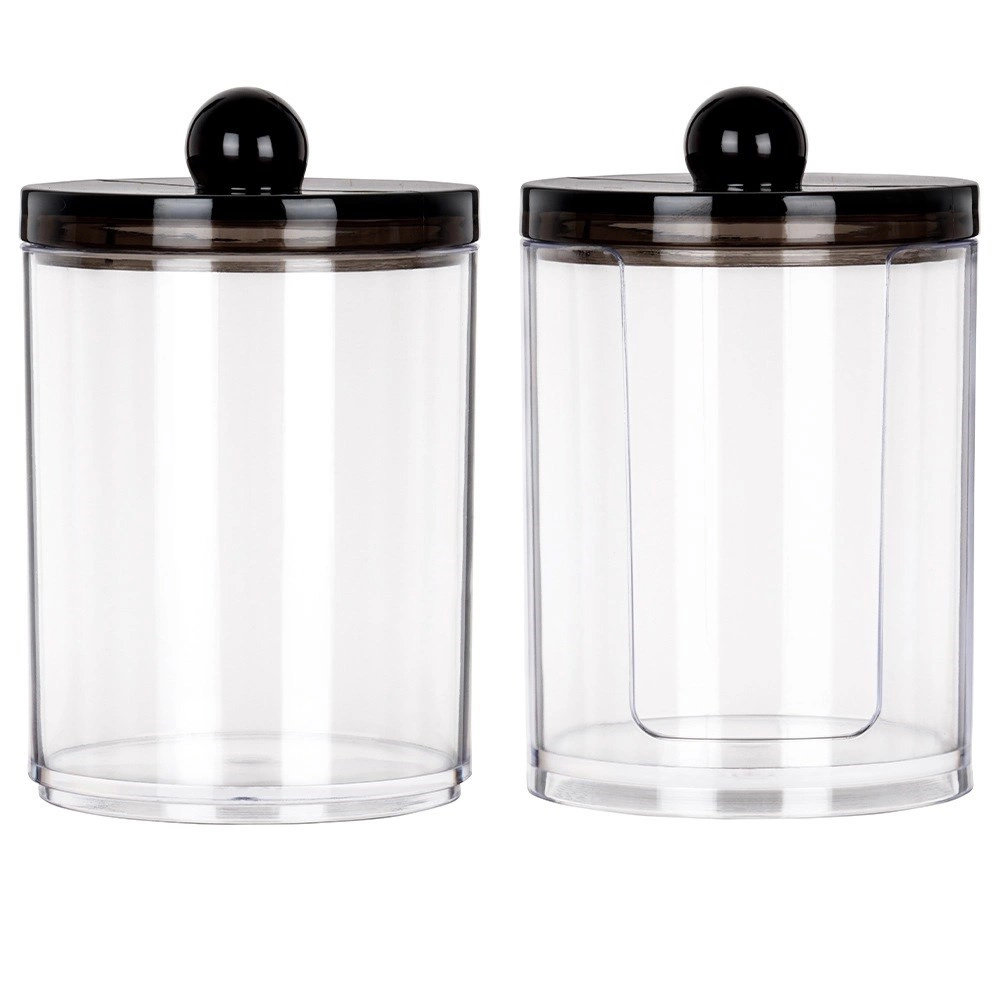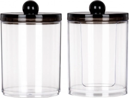 Minimalistyczne wykonanie w kolorze przezroczystym i czarnym idealnie pasuje na blat umywalki, toaletkę oraz do szafki. Szeroki otwór ułatwia szybkie uzupełnianie, a lekki i wytrzymały akryl zapewnia łatwą pielęgnację i długą żywotność.