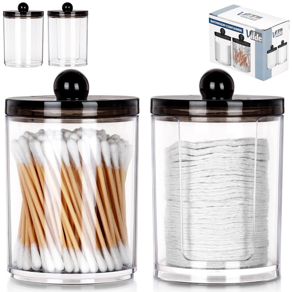 Zadbaj o porządek i higienę w łazience. Przezroczyste pojemniki pozwalają na natychmiastową kontrolę ilości, a wieczka z wygodnym pokrętłem chronią zawartość przed kurzem i wilgocią. Dzięki podajnikowi będziesz mieć płatki zawsze pod ręką, podczas gdy drugi pojemnik pomieści wystarczającą ilość patyczków kosmetycznych.