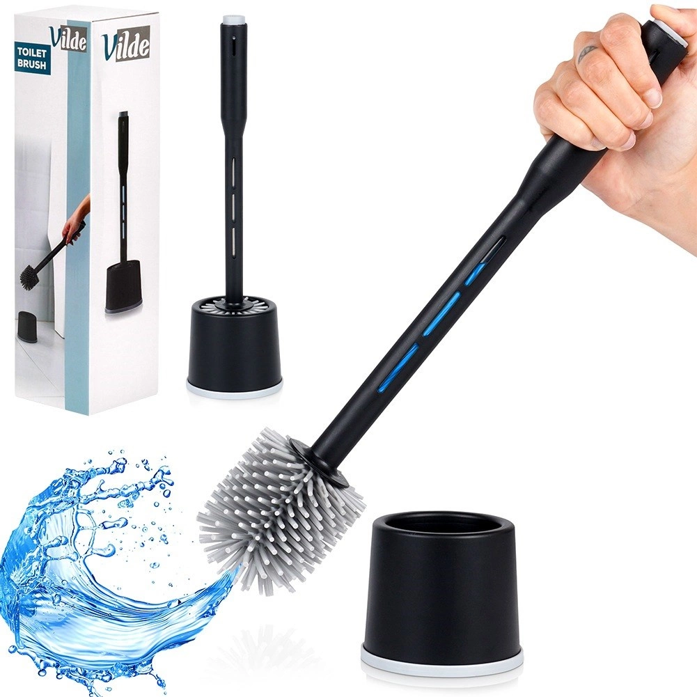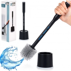 Praktyczna silikonowa szczotka do WC ze stabilnym stojakiem i zintegrowanym dozownikiem środka czyszczącego dla szybkiego i higienicznego czyszczenia. Dzięki elastycznym silikonowym włóknom, wydajnemu dozowaniu bezpośrednio z rękojeści oraz antypoślizgowemu stojakowi utrzymasz toaletę perfekcyjnie czystą bez zarysowań.