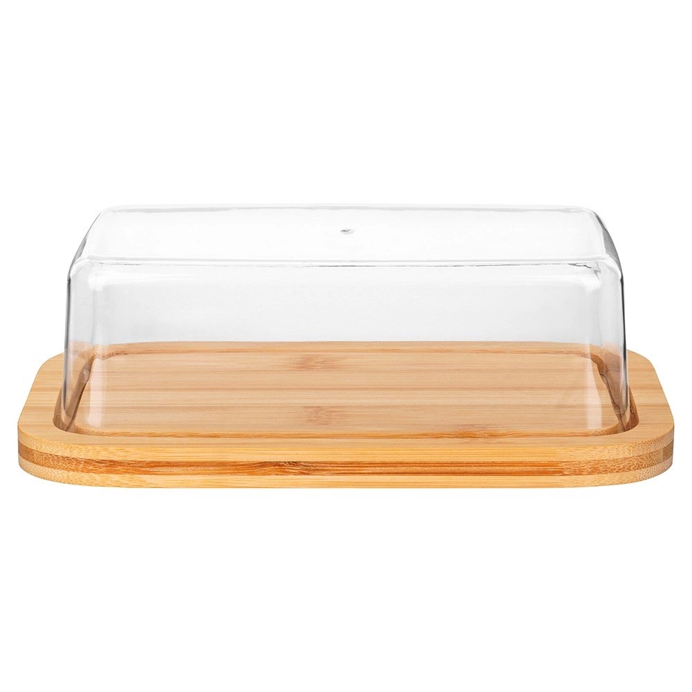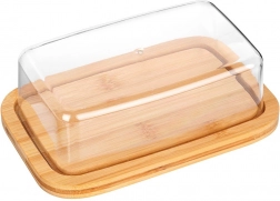 Elegancka bambusowa maselniczka z przezroczystą pokrywką do codziennego użytku. Idealna do przechowywania i serwowania masła, z naturalną bambusową podstawką oraz wytrzymałą transparentną pokrywą, która chroni świeżość i smak. Klasyczny kształt pasuje do każdej kuchni, a łatwa pielęgnacja zapewnia nienaganną higienę.
