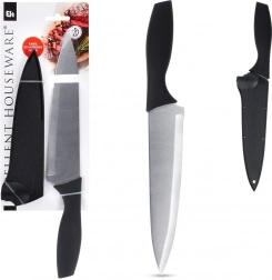 Uniwersalny nóż kucharski z długością ostrza 19 cm oraz praktycznym ochronnym etui do bezpiecznego przechowywania. Oferuje ostrze ze stali nierdzewnej, ergonomiczną, antypoślizgową rękojeść i wielofunkcyjne zastosowanie do warzyw, owoców i mięsa. Dzięki wysokiej jakości wykonania i długotrwałej ostrości jest idealny do każdej kuchni.