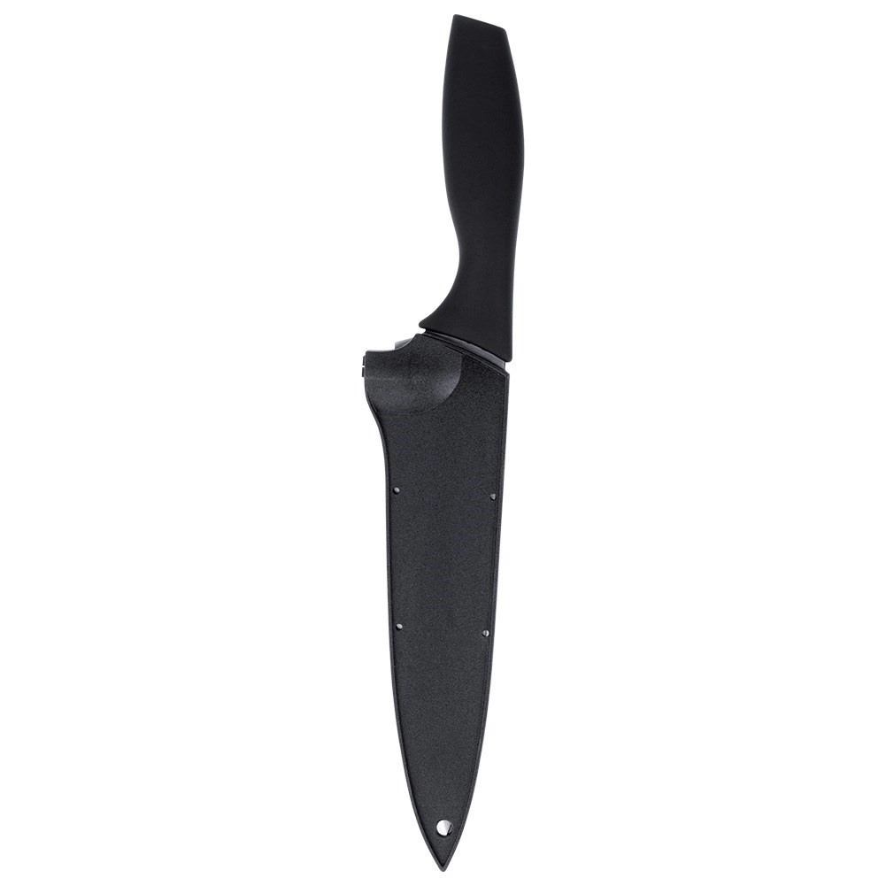 W zestawie znajduje się ochronne etui, które zabezpiecza ostrze przed uszkodzeniem i zwiększa bezpieczeństwo podczas przechowywania lub przenoszenia. Nóż jest łatwy w pielęgnacji i nadaje się do zmywarki.