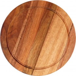 Kompaktowa i solidna deska z naturalnego drewna akacjowego wyróżnia się pięknym rysunkiem i wysoką trwałością. Głęboki obwodowy rowek zatrzymuje soki z mięsa, owoców i warzyw, dzięki czemu blat kuchenny pozostaje czysty. Dzięki uniwersalnemu, okrągłemu kształtowi świetnie sprawdzi się także jako taca do serwowania serów, wędlin, owoców i drobnych przekąsek.