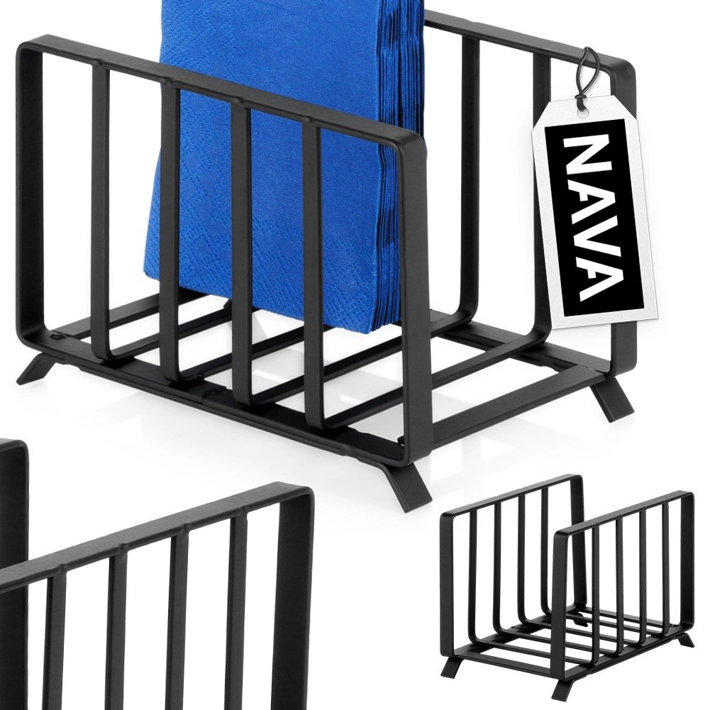 Elegancki i praktyczny metalowy stojak na serwetki w czarnym matowym kolorze utrzyma serwetki zawsze pod ręką i na swoim miejscu. Dzięki wymiarom 14,5 × 9,5 × 10,5 cm mieści dużą ilość serwetek i sprawdzi się w kuchni, jadalni oraz w ogrodzie. Wytrzymała, w całości metalowa konstrukcja z lakierem proszkowym zapewnia stabilność i długą żywotność. Stylowy dodatek w industrialnym designie marki NAVA.