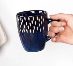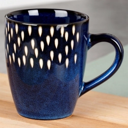 Ten stylowy kubek z wytrzymałej ceramiki gresowej jest idealny do codziennego użytku. Ciemnoniebieska glazura z delikatnym wzorem białych kropli doda Twojej kuchni nowoczesnego wyglądu, a wygodne ucho zapewni pewny chwyt.