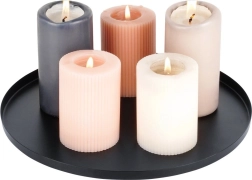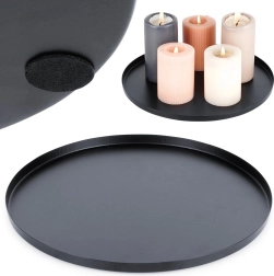 Ta wysokiej jakości metalowa podstawka w matowej czerni jest idealna do aranżowania świec, dekoracji czy biżuterii. Jej średnica 30 cm i delikatnie podwyższona krawędź zapewniają stabilność oraz ochronę powierzchni przed woskiem i zabrudzeniami. Ponadczasowy wygląd łatwo łączy się z różnymi stylami wnętrz.