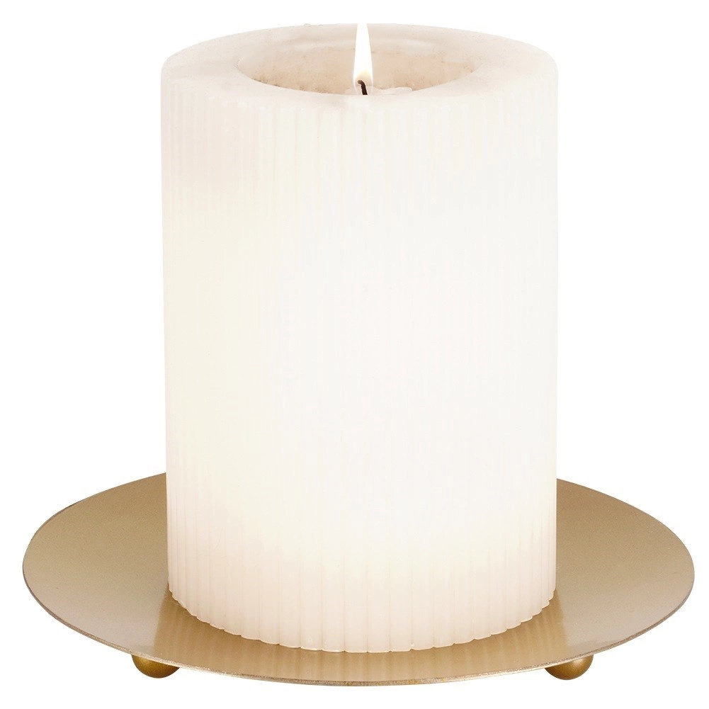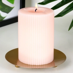 Metal malowany proszkowo w matowym, złotym odcieniu doskonale komponuje się z dodatkami i podkreśla piękno świec oraz dekoracji.
