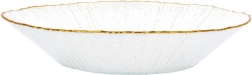 Elegancka szklana miska ze złotym brzegiem i delikatną fakturą jest idealna do serwowania sałatek, dodatków i deserów. Ma pojemność 500 ml, wymiary 20,5 × 20,5 × 4 cm i dzięki wysokiej jakości przejrzystemu szkłu z efektem kryształu doda nakrytemu stołowi luksusowego wyglądu. Dla długiej żywotności zalecamy mycie ręczne.