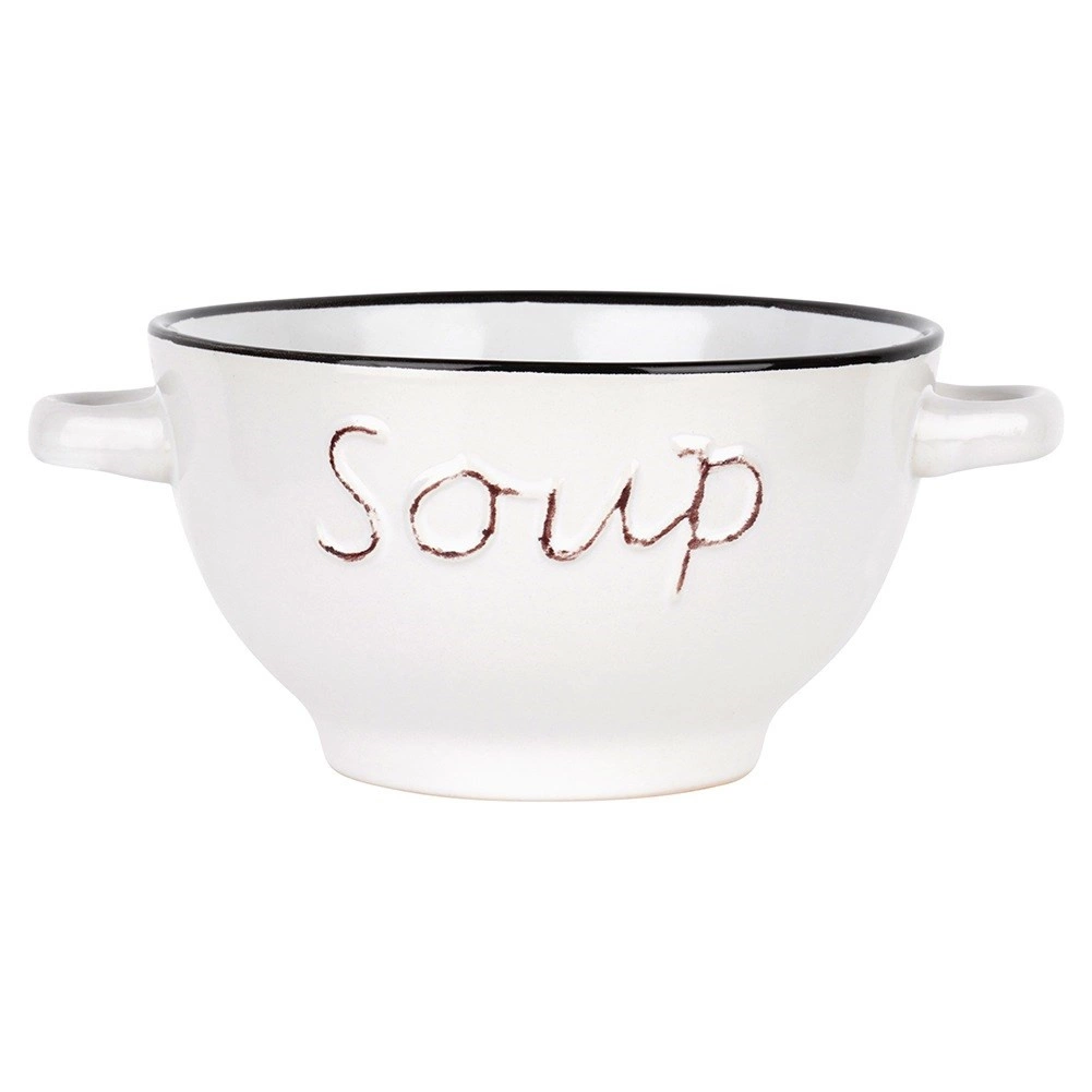 Odkryj uniwersalny zestaw misek, które świetnie sprawdzą się do zup, wywarów i kremów, a także do płatków śniadaniowych, jogurtu, owoców czy przekąsek. Ponadczasowy kształt, kontrastowa krawędź i wypukły napis dodają nakryciu stołu elegancji i łatwo komponują się z każdym wyposażeniem kuchni.