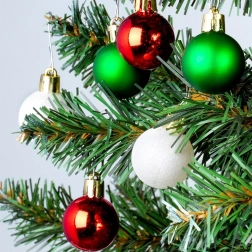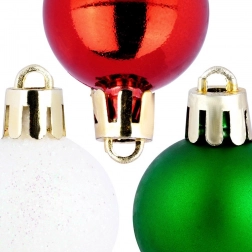Połyskujące, matowe i brokatowe bombki w kolorach czerwonym, zielonym i białym zapewnią klasyczną świąteczną atmosferę i piękne refleksy światła.
