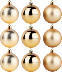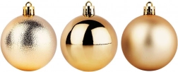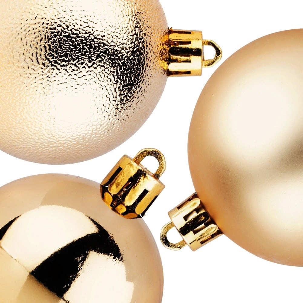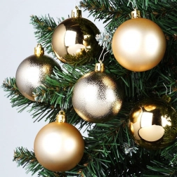 Bombki wykonane są z trwałego, nietłukącego się materiału, który wyglądem przypomina szkło, ale jest zdecydowanie bezpieczniejszy i bardziej wytrzymały. Złoty odcień nadaje dekoracjom elegancję i ponadczasowy styl, dlatego pasuje zarówno do tradycyjnych, jak i nowoczesnych świątecznych kolorów.