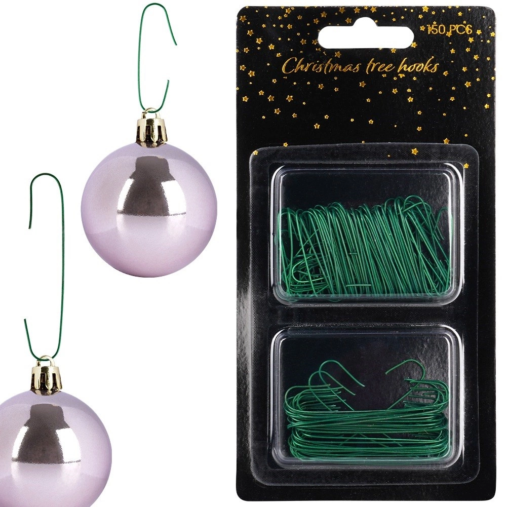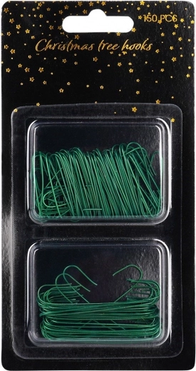 Praktyczny zestaw 150 haczyków do ozdób choinkowych w dwóch rozmiarach, umożliwiający łatwe i bezpieczne zawieszanie dekoracji na choince. Zielony kolor dyskretnie wtapia się w gałązki, solidny metal zapewnia długą żywotność, a dwa wymiary (3,5 cm i 6 cm) dopasują się do mniejszych i większych ozdób.