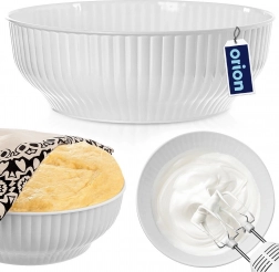 Ta uniwersalna biała misa świetnie nadaje się do wyrabiania ciasta, mieszania, blendowania i ubijania. Dzięki pojemności 5 litrów sprawdzi się także do serwowania sałatek, mieszanek warzywnych, owoców, przekąsek, chipsów czy popcornu. Ponadczasowy design z żłobkowaną strukturą pięknie uzupełni każdą zastawę stołową.