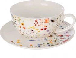 Elegancki porcelanowy zestaw tea-for-one dla jednego miłośnika herbaty łączy dzbanek 400 ml, filiżankę 280 ml oraz spodek w kompaktowej, sztaplowanej formie. Biały porcelan zdobią kolorowe kwiaty polne, a dzbanek ma praktyczną pokrywkę dla utrzymania temperatury i ochrony napoju. Nadaje się do zmywarki i mikrofalówki – świetny także jako stylowy prezent.