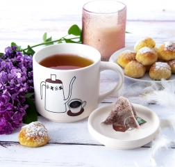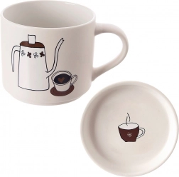 Delikatna ilustracja imbryka i filiżanki dodaje stylu każdemu nakryciu stołu, a pokrywkę można wykorzystać także jako spodek.