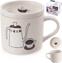 Elegancki porcelanowy kubek z pokrywką o pojemności 420 ml jest idealny na herbatę, napary ziołowe oraz kawę. Praktyczna pokrywka dłużej utrzymuje ciepło napoju i może służyć także jako podstawka na torebkę herbaty. Wysokiej jakości porcelana w beżowym kolorze z subtelnym motywem imbryka, odpowiednia do zmywarki i kuchenki mikrofalowej, z wygodnym uchem do codziennego użytku.