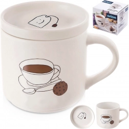 Ten elegancki kubek w beżowym kolorze z subtelnym motywem herbaty to świetny wybór do codziennych rytuałów. Pokrywka pomaga utrzymać temperaturę napoju, a jednocześnie służy jako praktyczna miseczka odkładcza na torebkę herbaty po zaparzeniu. Duża pojemność 420 ml pozwala cieszyć się większą ilością ulubionego napoju bez częstego dolewania.