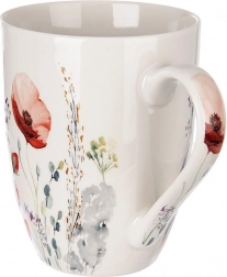 Stylowy kubek z wysokiej jakości porcelany z delikatnym motywem polnych kwiatów wniesie nutę elegancji do Twojego stołu. Dzięki pojemności 360 ml jest idealny do ulubionych gorących napojów, a wygodne ucho zapewnia pewny chwyt. Ponadczasowy design łatwo łączy się z każdą zastawą stołową.