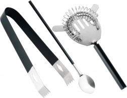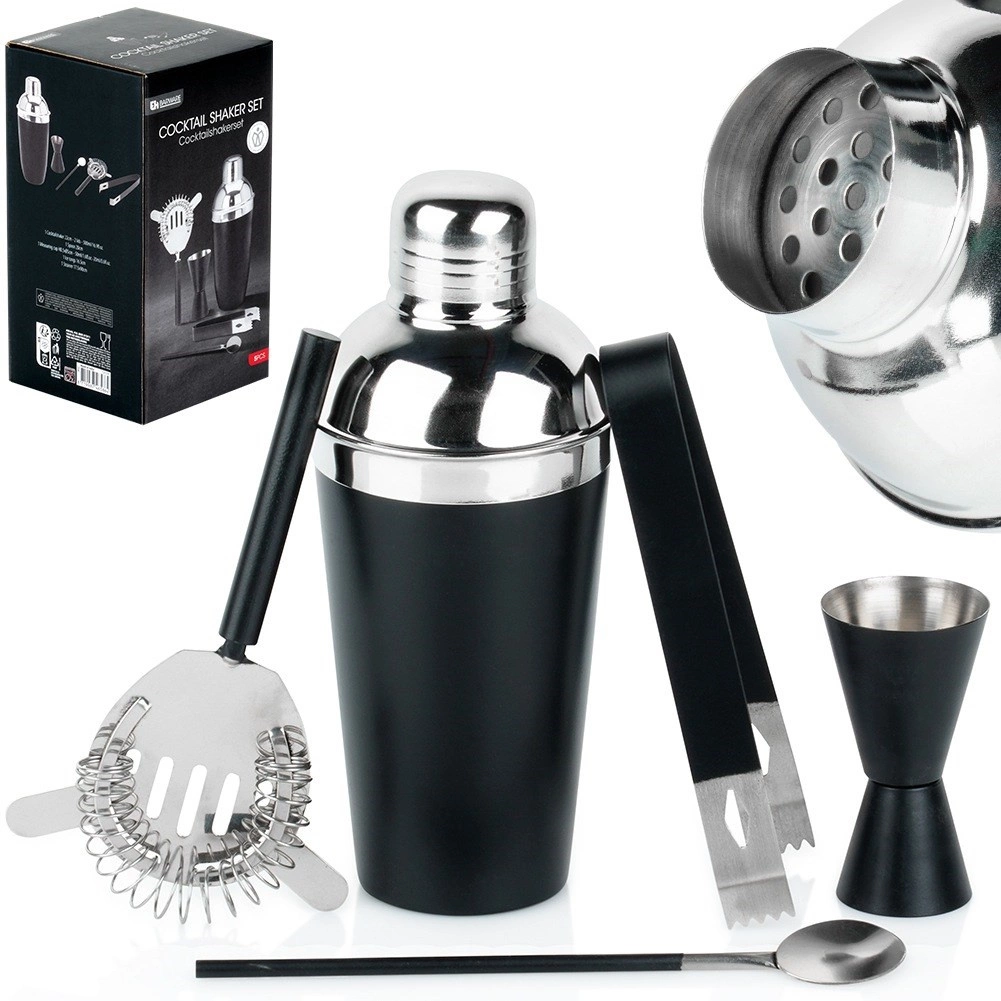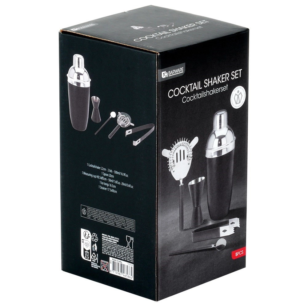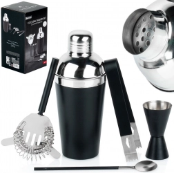 - Kompletne wyposażenie: shaker 500 ml, sitko barowe, podwójna miarka 20/50 ml, łyżka barowa, szczypce do lodu