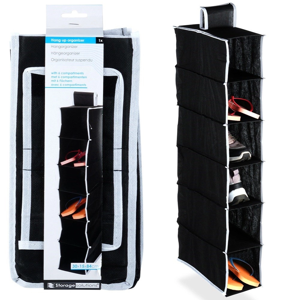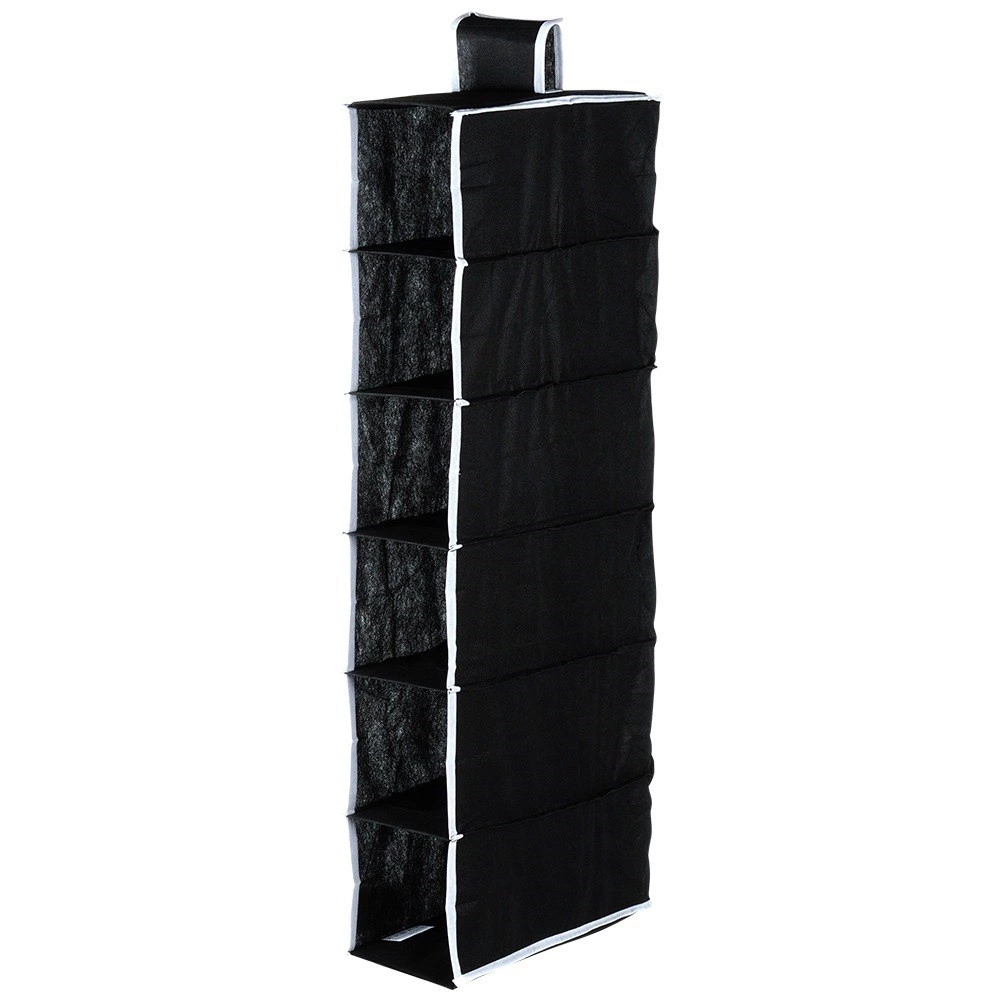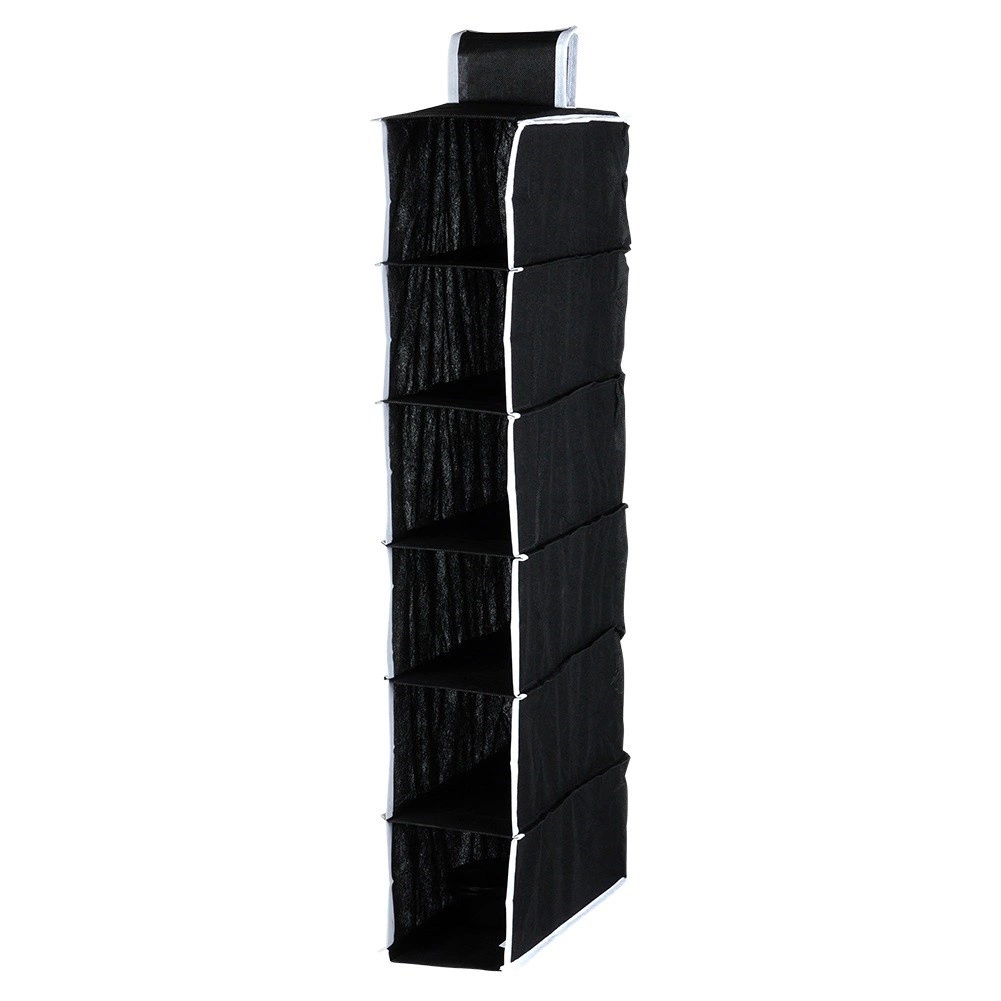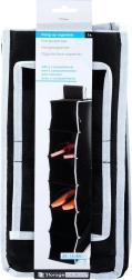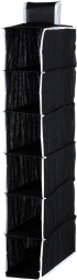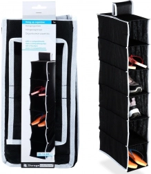 Maksymalizuj przestrzeń do przechowywania w szafie dzięki kompaktowemu wiszącemu organizerowi, który oferuje 6 pojemnych półek do przejrzystego ułożenia butów, koszulek, ręczników czy modnych dodatków. Czarne wykończenie z kontrastową lamówką wygląda nowocześnie i uniwersalnie w każdym wnętrzu.