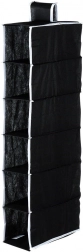 Wiszący organizer do szafy z 6 półkami oszczędza miejsce i pomaga utrzymać porządek w obuwiu, ubraniach i dodatkach. Lekka tekstylna konstrukcja z wytrzymałego poliestru, łatwy montaż na drążek za pomocą rzepu, wymiary 30 × 15 × 84 cm. Składana konstrukcja dla łatwego przechowywania.