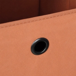 Składane tekstylne kosze w neutralnych kolorach z metalowym oczkiem dla łatwego wysuwania. Idealne na ubrania, zabawki czy akcesoria.