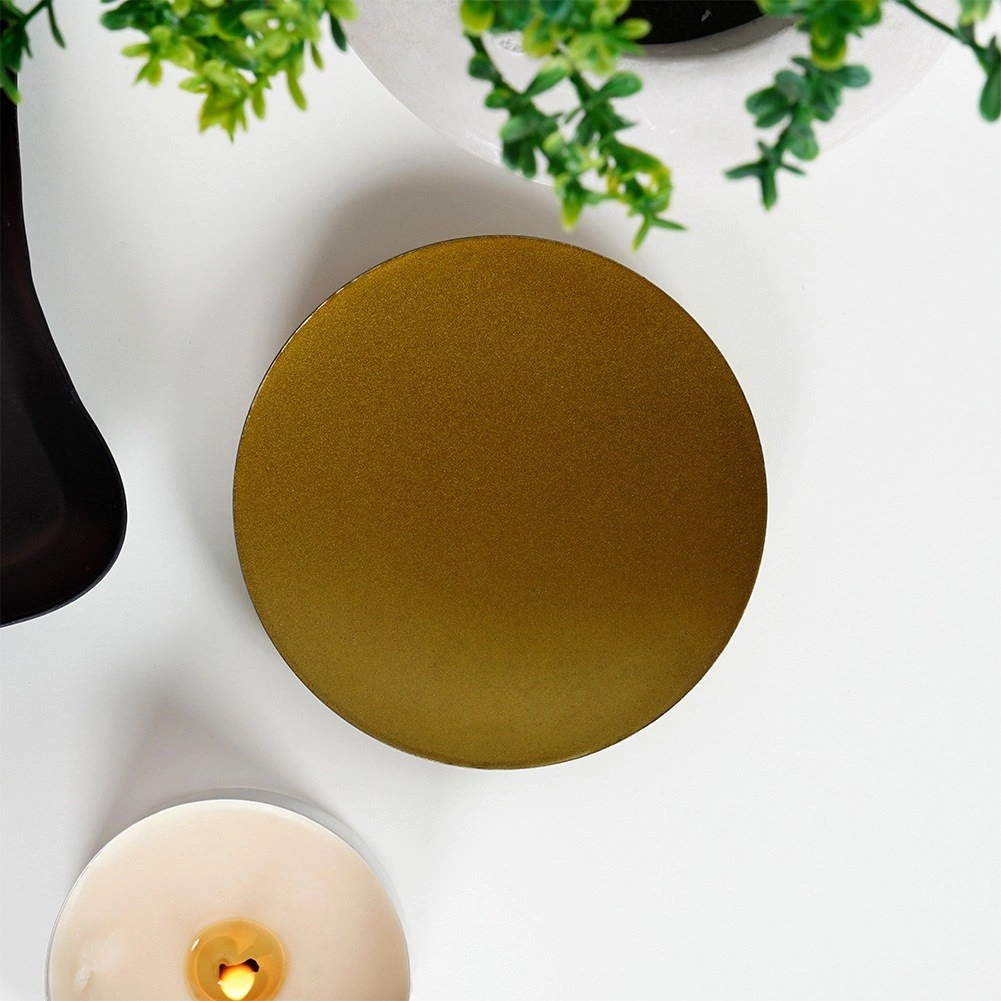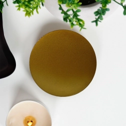 Odkryj stylowy i funkcjonalny dodatek do swojego domu – metalową podstawkę pod świece w matowym złocie. Niski talerzyk na trzech kulistych nóżkach gwarantuje znakomitą stabilność i lekkie uniesienie nad powierzchnią, co pomaga odprowadzać ciepło i chronić meble przed woskiem i żarem. Minimalistyczny wygląd łatwo dopasujesz do każdego stylu wnętrza.
