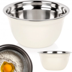 Ta praktyczna miska z wysokiej jakości stali nierdzewnej łączy ponadczasowy design z wysoką trwałością. Biała zewnętrzna powierzchnia prezentuje się elegancko, a polerowane wnętrze ułatwia czyszczenie i jest higieniczne. Głęboki, zaokrąglony kształt oraz poszerzony rant zapewniają wygodne mieszanie i przelewanie.