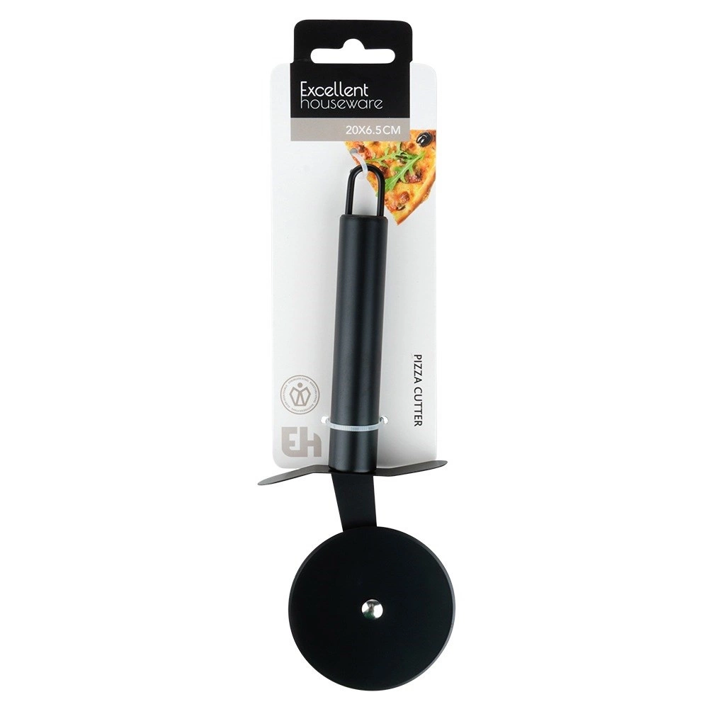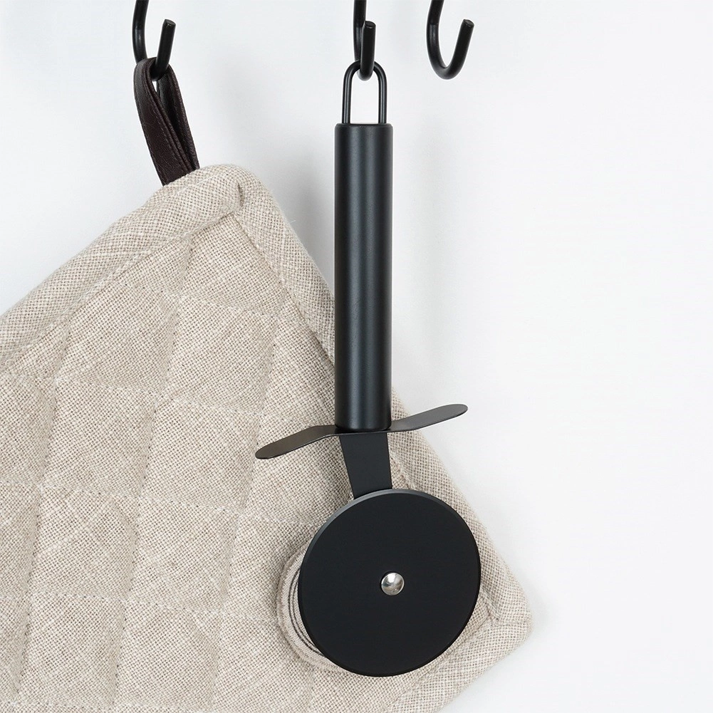 Praktyczny nóż do pizzy z obrotowym kółkiem do szybkiego i czystego krojenia. Wykonany z wytrzymałej stali nierdzewnej z matowym czarnym wykończeniem, oferuje ostre i precyzyjne cięcie, ergonomiczną rączkę oraz możliwość zawieszenia. Nadaje się do zmywarki.