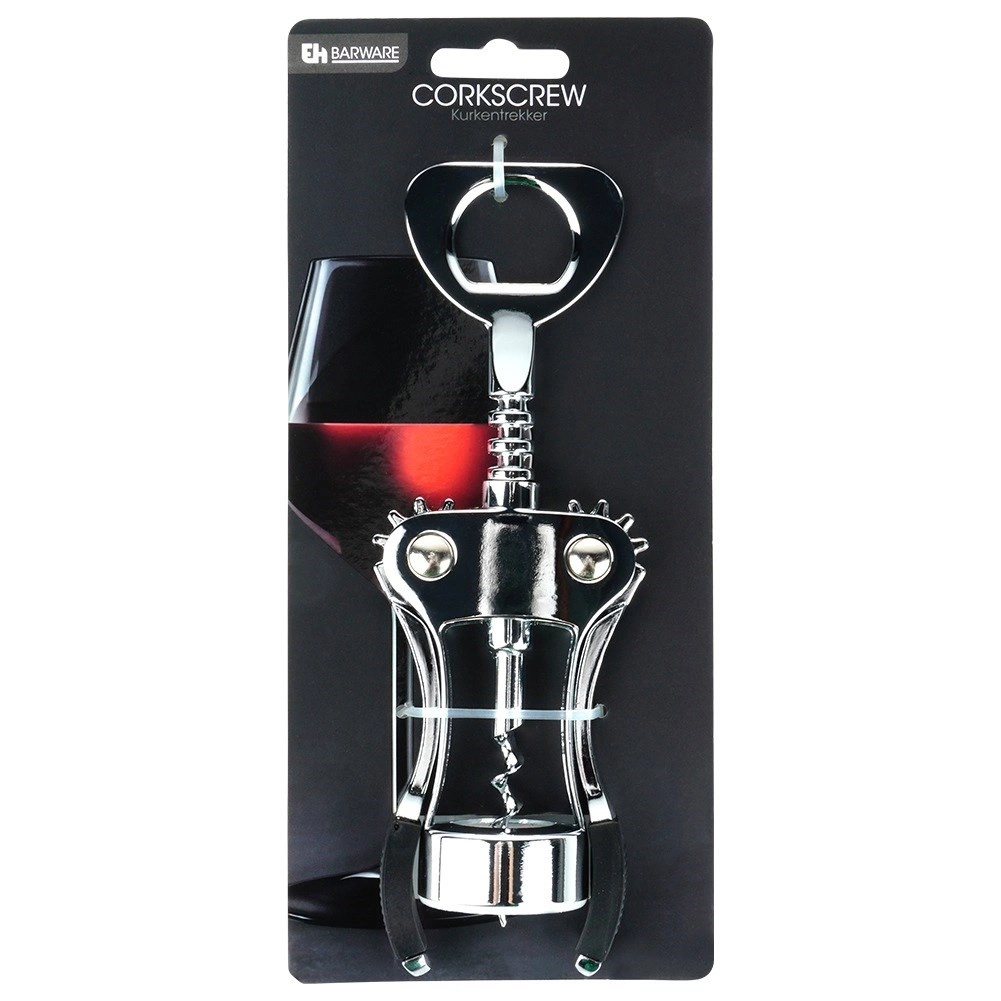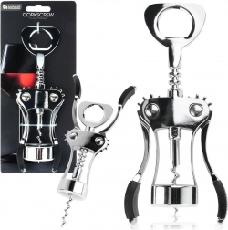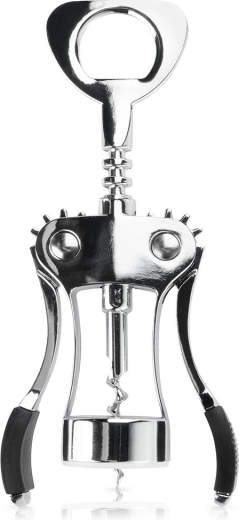 Uniwersalny korkociąg skrzydełkowy łączy klasyczny design z solidnym metalowym wykonaniem. Spiralna, kolczasta śruba gładko wkręca się w korek, a dzięki ramionom dźwigni łatwo wyciągniesz korek bez zbędnej siły. Górna część służy także jako otwieracz do kapsli, więc otworzysz wino i piwo jednym narzędziem.