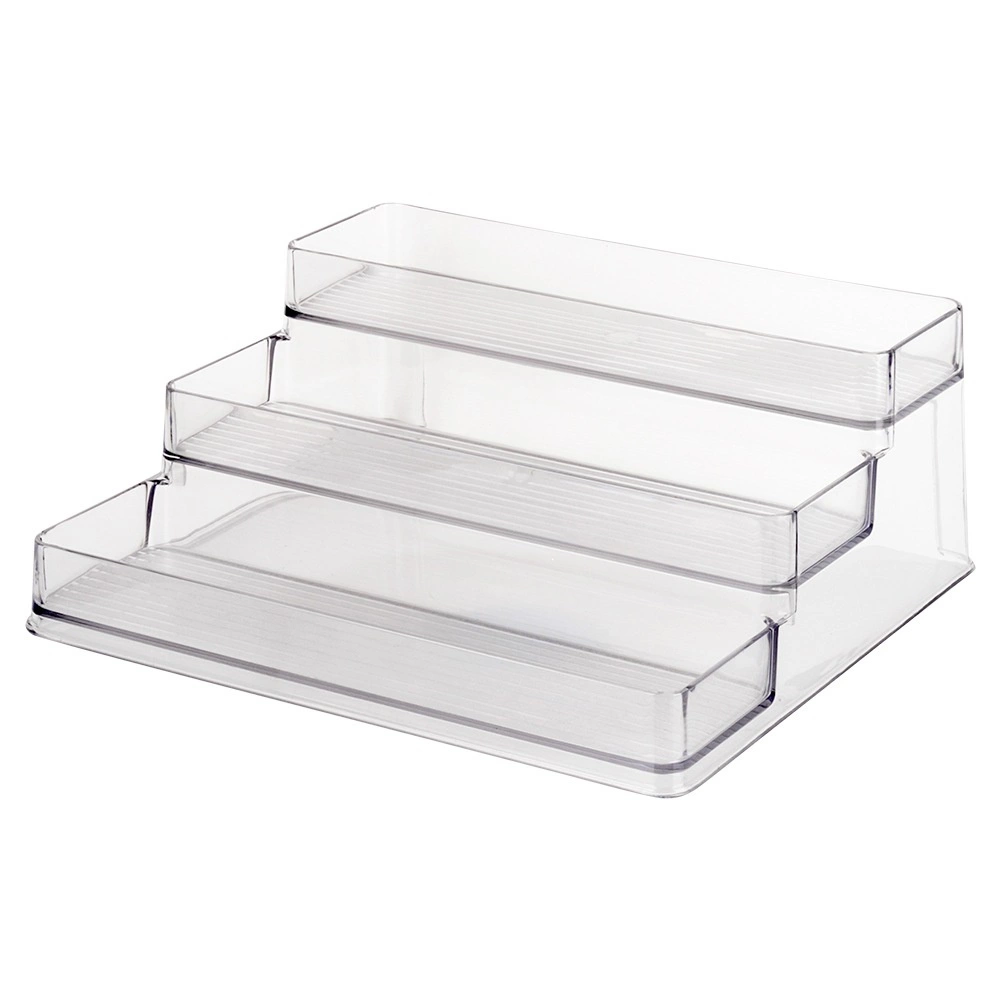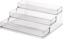 Ten uniwersalny, trzypoziomowy organizer-półka z przezroczystego plastiku natychmiast poprawi porządek i widoczność w kuchni, łazience lub spiżarni. Transparentny materiał pozwala szybko znaleźć potrzebny składnik lub kosmetyk, a schodkowa konstrukcja oszczędza miejsce i zwiększa pojemność.