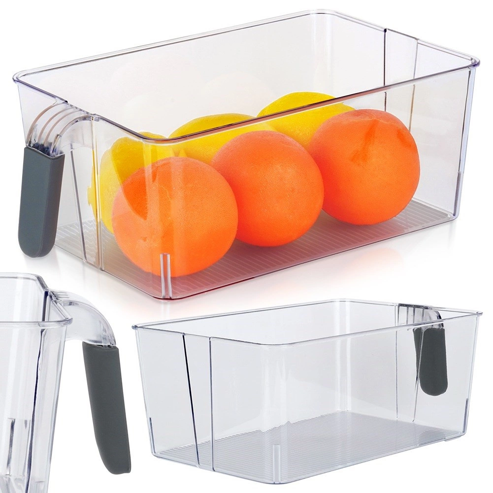 Praktyczny, przezroczysty organizer do lodówki o wymiarach 31 × 18 × 11,5 cm z wygodnym uchwytem ułatwiającym wysuwanie z półki. Idealny do przejrzystego przechowywania żywności, owoców i warzyw. Wykonany z wysokiej jakości plastiku, jest trwały, bezpieczny dla żywności i łatwy w czyszczeniu.