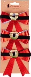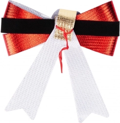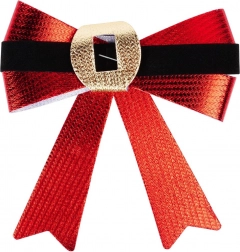 Elegancki zestaw trzech świątecznych kokard o wymiarach 10 × 10 cm doda Twoim dekoracjom natychmiastowego blasku. Kokardy w czerwonym, metalicznym wykończeniu z czarnym paskiem i złotą „klamrą” przywołują klasyczny świąteczny styl. Są lekkie, łatwe w montażu za pomocą drucika i sprawdzą się na choince, wiankach, balustradach oraz oknach. Dzięki wysokiej jakości materiałowi są trwałe, wielokrotnego użytku i tworzą świąteczną atmosferę w każdym wnętrzu.