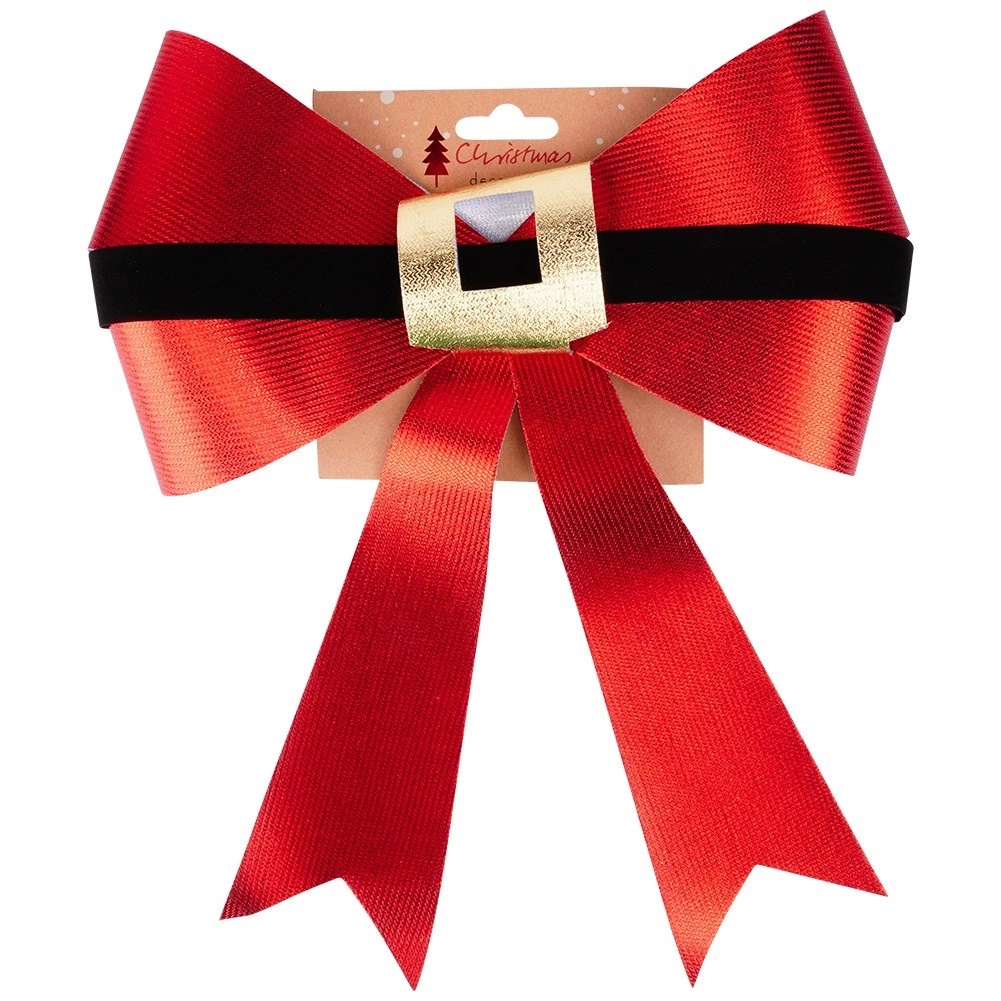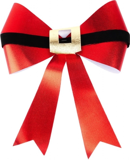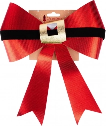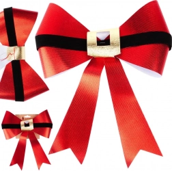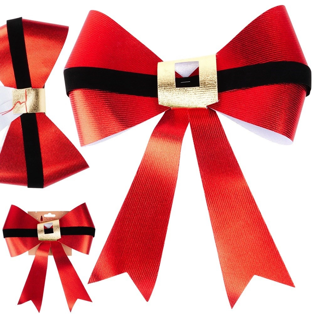 Stwórz w domu i pracy magiczną, świąteczną atmosferę. Ta duża kokarda w błyszczącej czerwieni z czarnym „paskiem” i złotą sprzączką nawiązuje do pasa Mikołaja, dzięki czemu natychmiast przyciąga uwagę i podkreśla każdy wystrój – wewnątrz i na zewnątrz.
