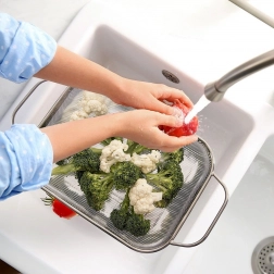 Delikatna siateczka skutecznie odprowadza wodę, a jednocześnie zatrzymuje nawet małe kawałki żywności – idealna do warzyw, makaronu czy ryżu.