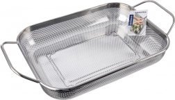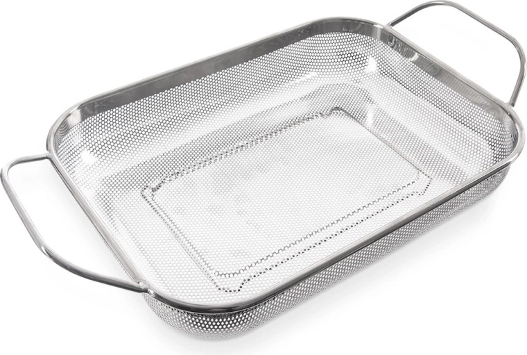 Kosz służy jako cedzak nad zlewem i jako kosz grillowy. Perforacja przepuszcza ciepło i dym, a żywność nie wpada do środka rusztu.