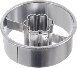 Praktyczna wykrawaczka ze stali nierdzewnej w kształcie koła z kwiatowym otworem pośrodku, ułatwiająca przygotowanie oryginalnych ciastek i pierniczków. Dzięki otworowi w środku ciasteczka można nadziewać marmoladą lub czekoladą. Wytrzymała stal nierdzewna, uniwersalne zastosowanie i łatwe czyszczenie w zmywarce sprawiają, że to świetny pomocnik do każdego pieczenia.