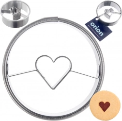 Okrągłe wycięcie z czystym sercowym otworem dla efektownych ciasteczek z nadzieniem lub bez. Idealne do kruchego i piernikowego ciasta.