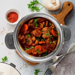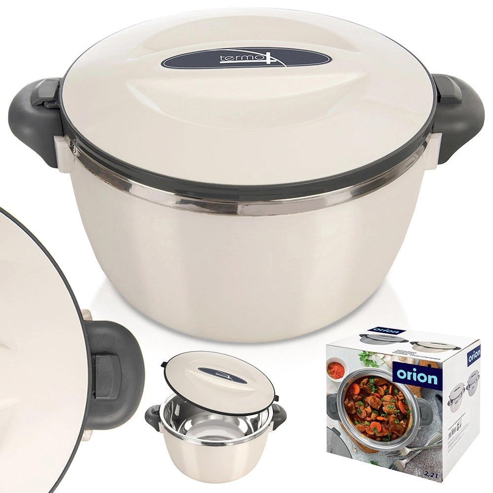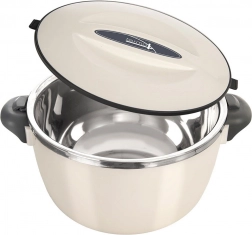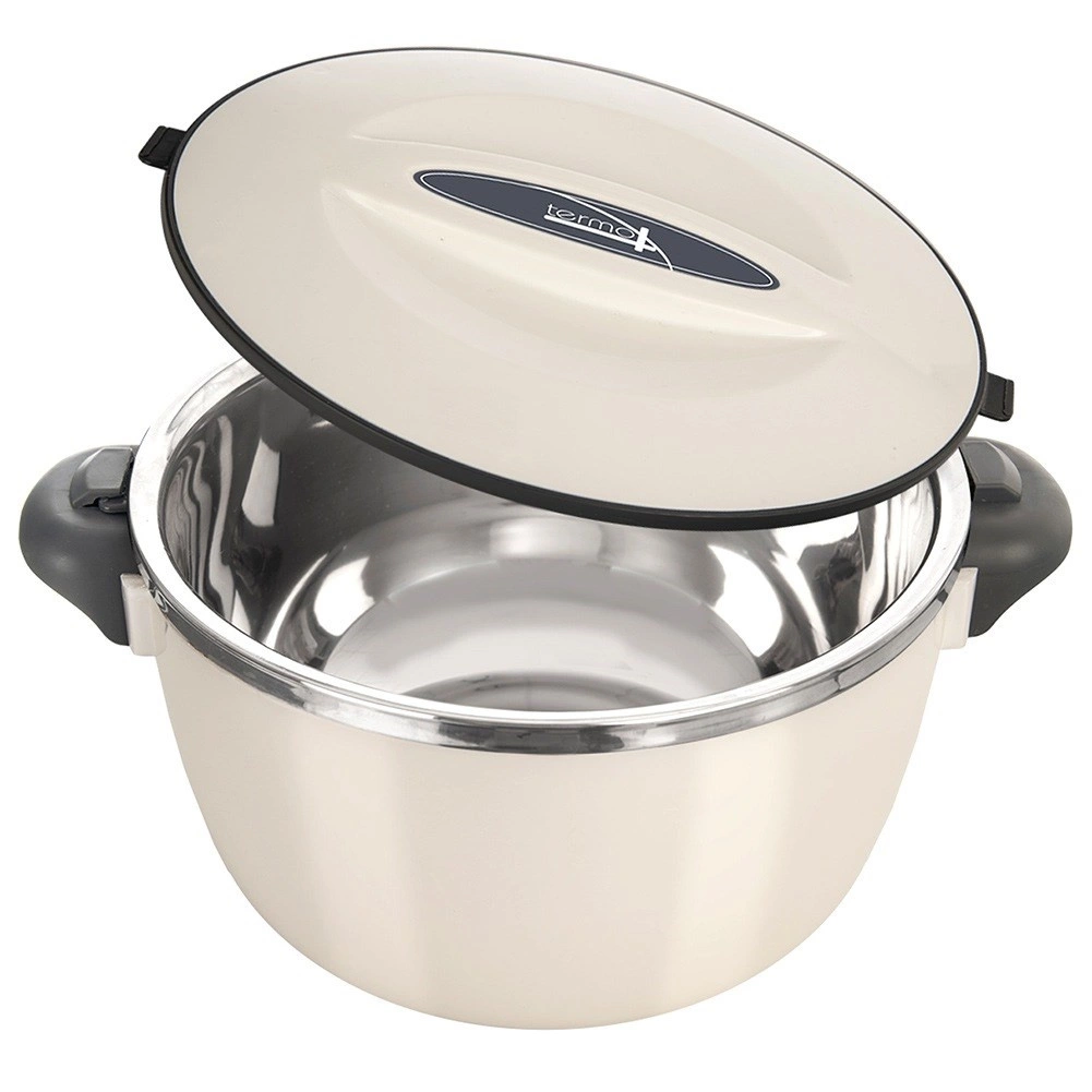 Termonaczynie z linii Termo to świetny pomocnik do codziennego serwowania i przenoszenia potraw. Wewnętrzny wkład ze stali nierdzewnej pomaga utrzymać stabilną temperaturę, a lekka i wytrzymała obudowa z tworzywa zapewnia pewny chwyt i wygodne użytkowanie. Dzięki obrotowej pokrywie zamykanie jest szybkie i proste. Naczynie nie jest w 100% szczelne – do przenoszenia trzymaj je pionowo.