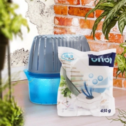Standardowy format tabletki 450 g pasuje do większości pochłaniaczy wilgoci z wymienną tabletką. Wymiana jest szybka, czysta i bez użycia narzędzi.