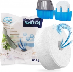 Wymiana jest szybka i czysta – tabletka stopniowo się rozpuszcza, a skroplona woda pozostaje w dolnym zbiorniku urządzenia. W zależności od wilgotności i temperatury otoczenia jedna tabletka działa około 2–5 miesięcy w pomieszczeniach do ok. 20 m².