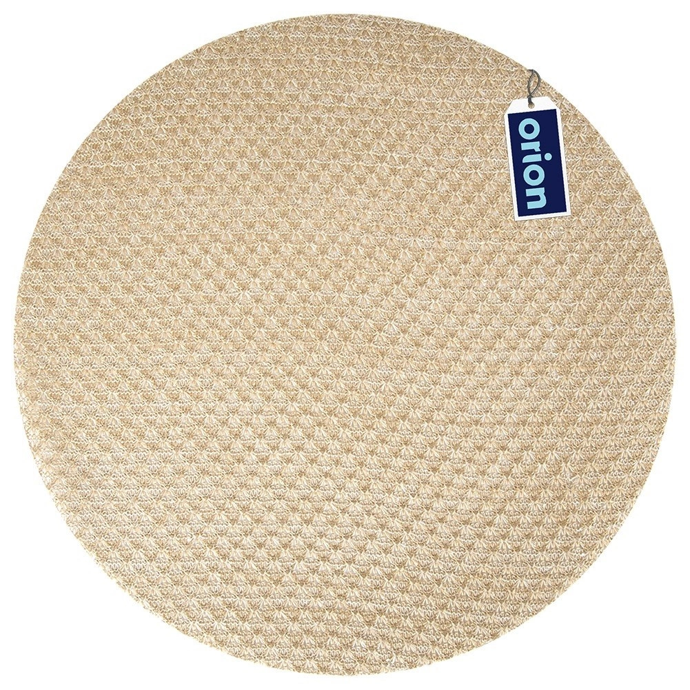 Elegancka okrągła podkładka na stół o średnicy 38 cm w kolorze beżowym ze złotą nicią doda nakryciu stołu luksusowego wyglądu. Jest wytrzymała, chroni stół przed ciepłem, zarysowaniami i zabrudzeniami i świetnie sprawdzi się pod talerze, kubki oraz dekoracje. Uniwersalne zastosowanie do jadalni, kuchni i salonu.