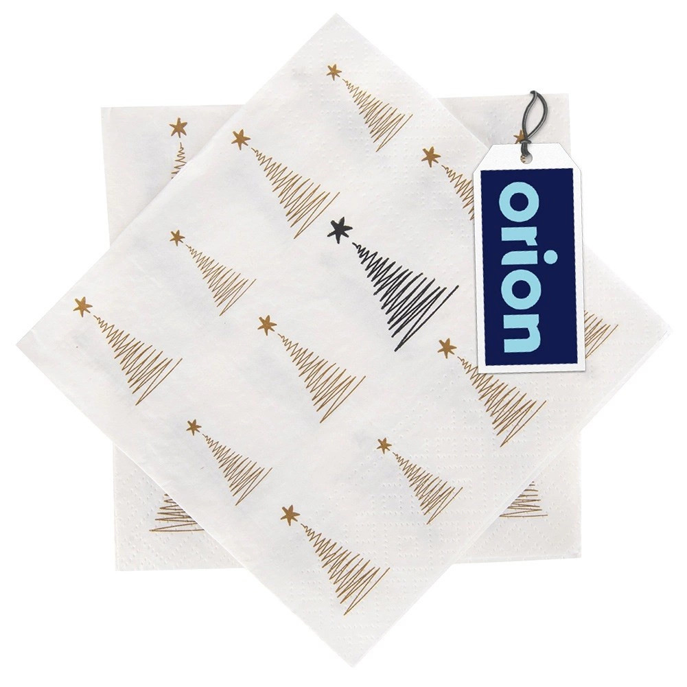 Stylowe papierowe serwetki na świąteczny stół z eleganckim złotym nadrukiem choinek. 3-warstwowa jakość dla większej wytrzymałości i wysokiej chłonności, praktyczne jednorazowe użycie oraz format 33 × 33 cm po rozłożeniu. Idealne na Boże Narodzenie, przyjęcia i codzienne nakrycie stołu.