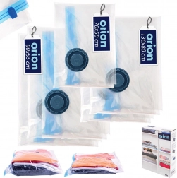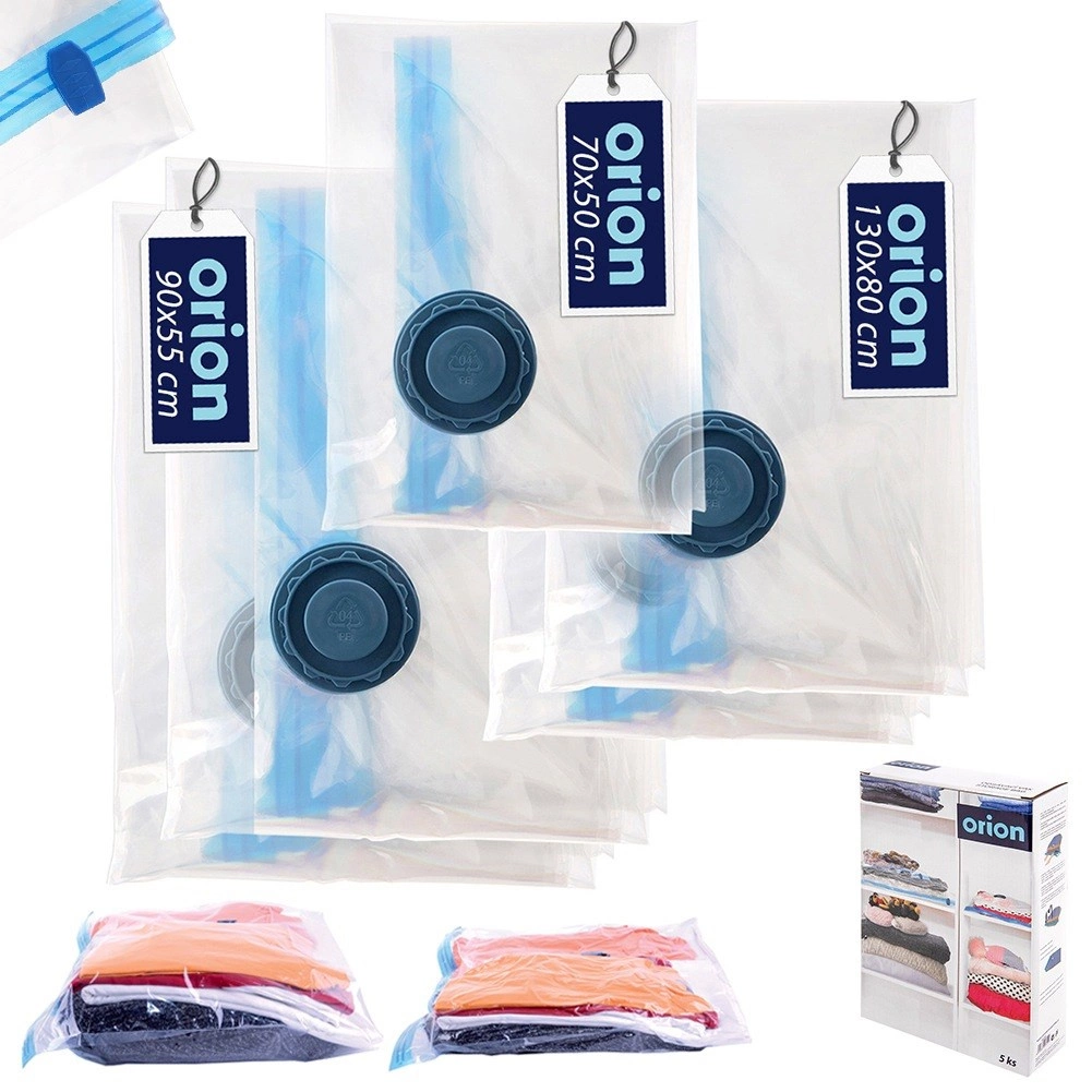 Praktyczny zestaw 5 worków próżniowych w trzech rozmiarach pozwala zaoszczędzić nawet 75% miejsca w szafie i walizce. Worki wykonane są z wytrzymałej przezroczystej folii ze zaworem zwrotnym i hermetycznym podwójnym zamkiem, który zapobiega uchodzeniu powietrza. Idealne do ubrania sezonowego, kołder i pościeli, a także zabawek pluszowych – chronią przed kurzem, wilgocią, roztoczami i molami.